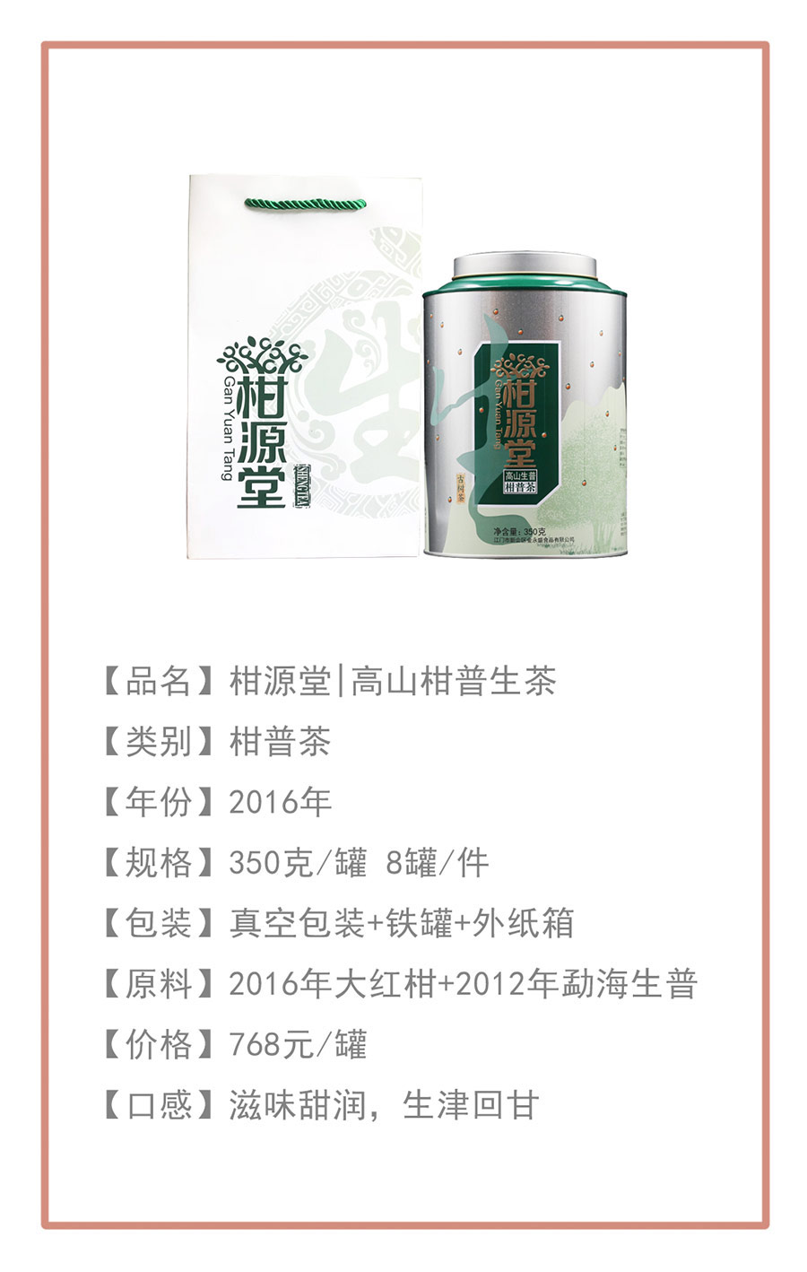 2016高山柑普生茶350克鐵罐裝